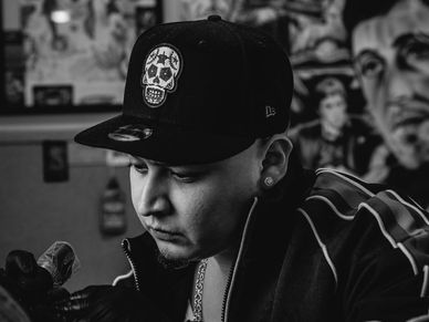 Cristian Delgado, a skilled tattoo artist and proud partner at Primm and Proper, specializes in Lettering and Black & Gray Realism, transforming client visions into timeless works of art.
